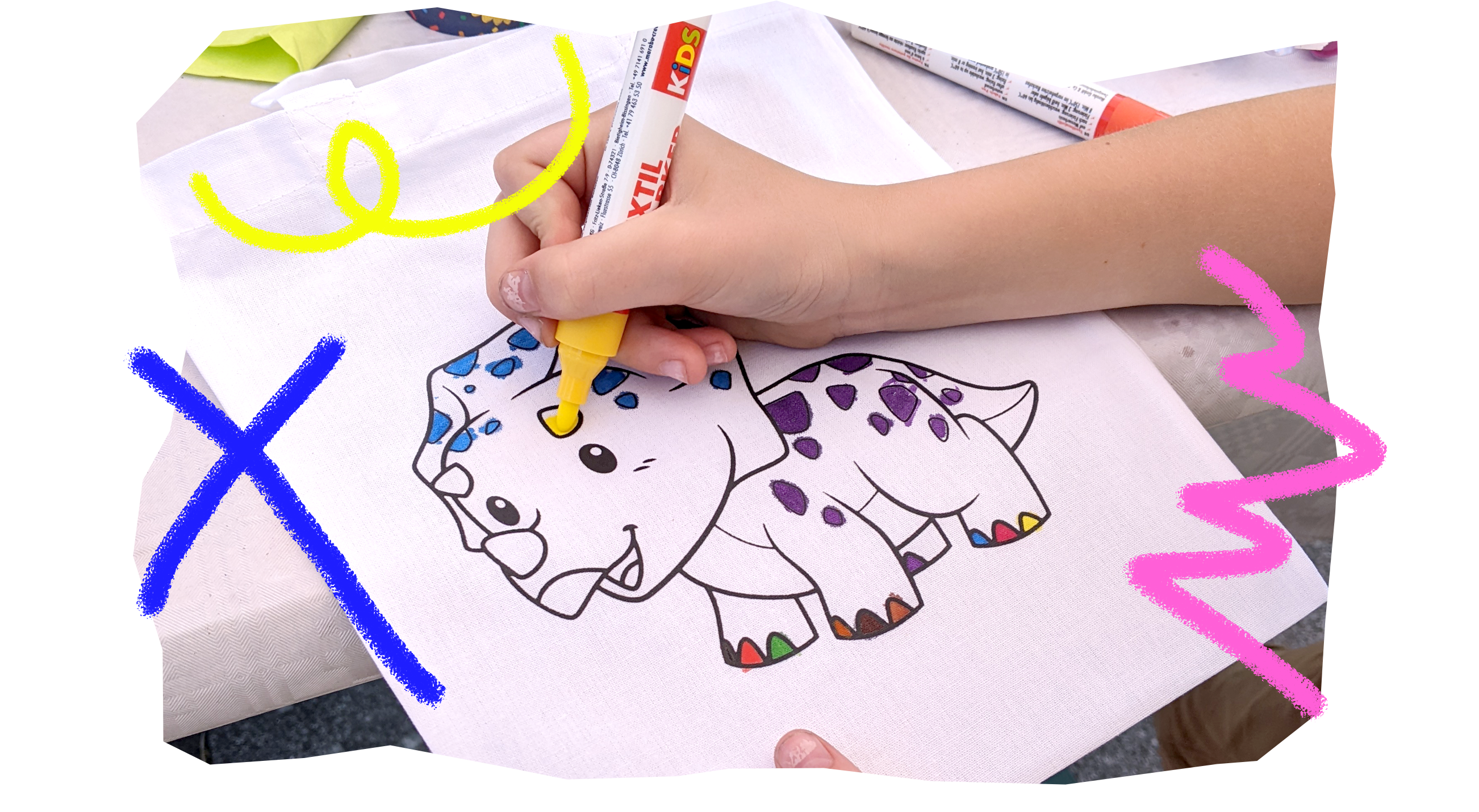 Unsere Textilmarker von Marabu in 10 kräftigen schönen Farben machen jede Ausmaltasche zu einem Unikat.