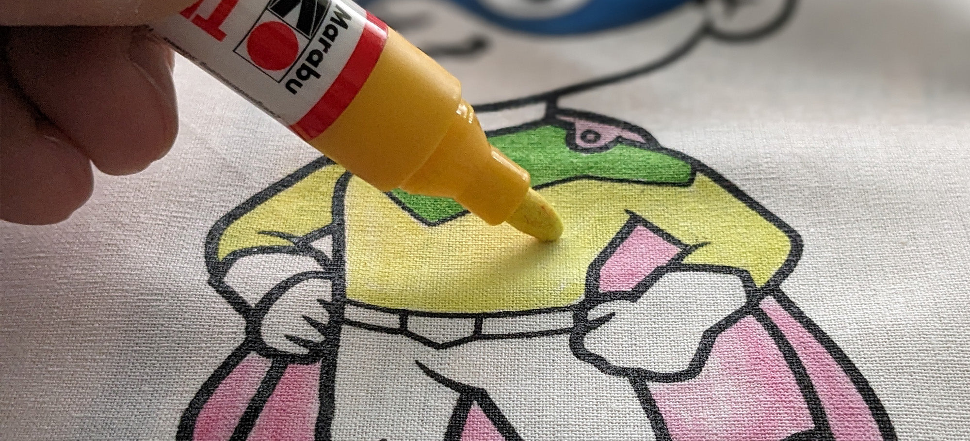 Unsere Baumwolltaschen lassen sich wunderbar mit Textilmarkern ausmalen. Textilmarker sind nicht im Lieferumfang enthalten, können aber im Set oder separat mitbestellt werden.