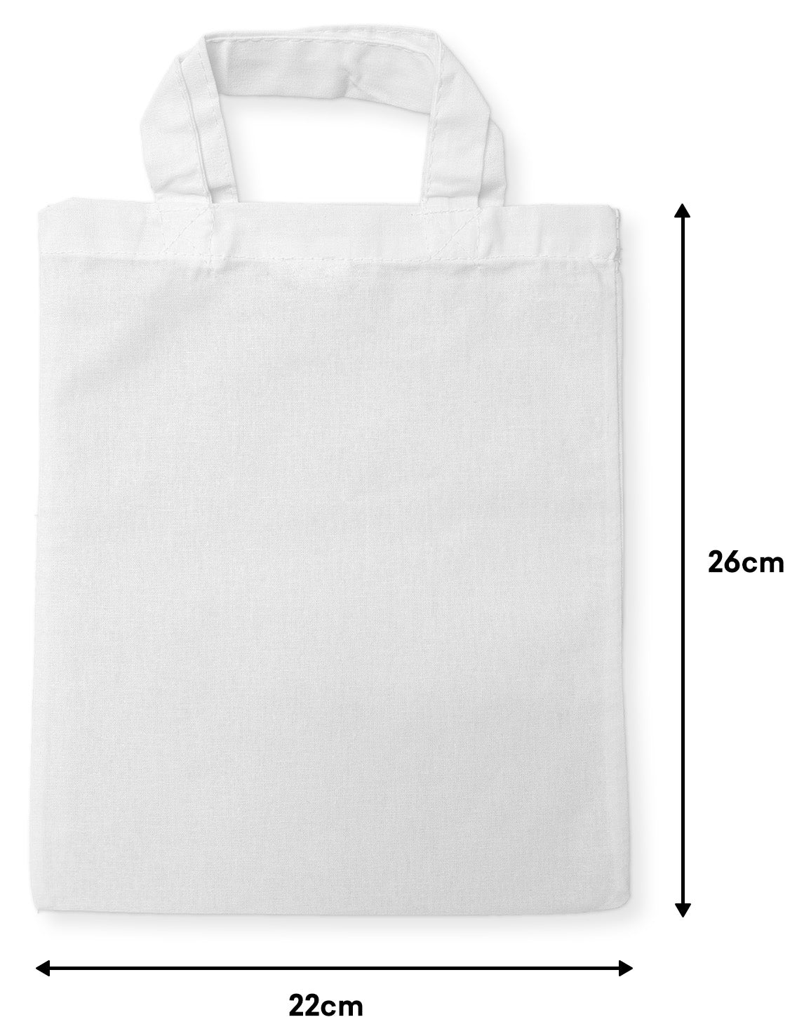 Unsere Taschen sind aus 100% Baumwolle. Durch die Maße von 22 x 26 cm ist die Tasche ideal für Kinder. Der weiße Stoff ist Oeko–Tex 100 REACH zertifiziert und hat eine Grammatur von 140 g/m², wodurch er sehr robust und langlebig ist. Der abgesetzte Henkel an der Oberseite ermöglicht einen bequemen Transport.